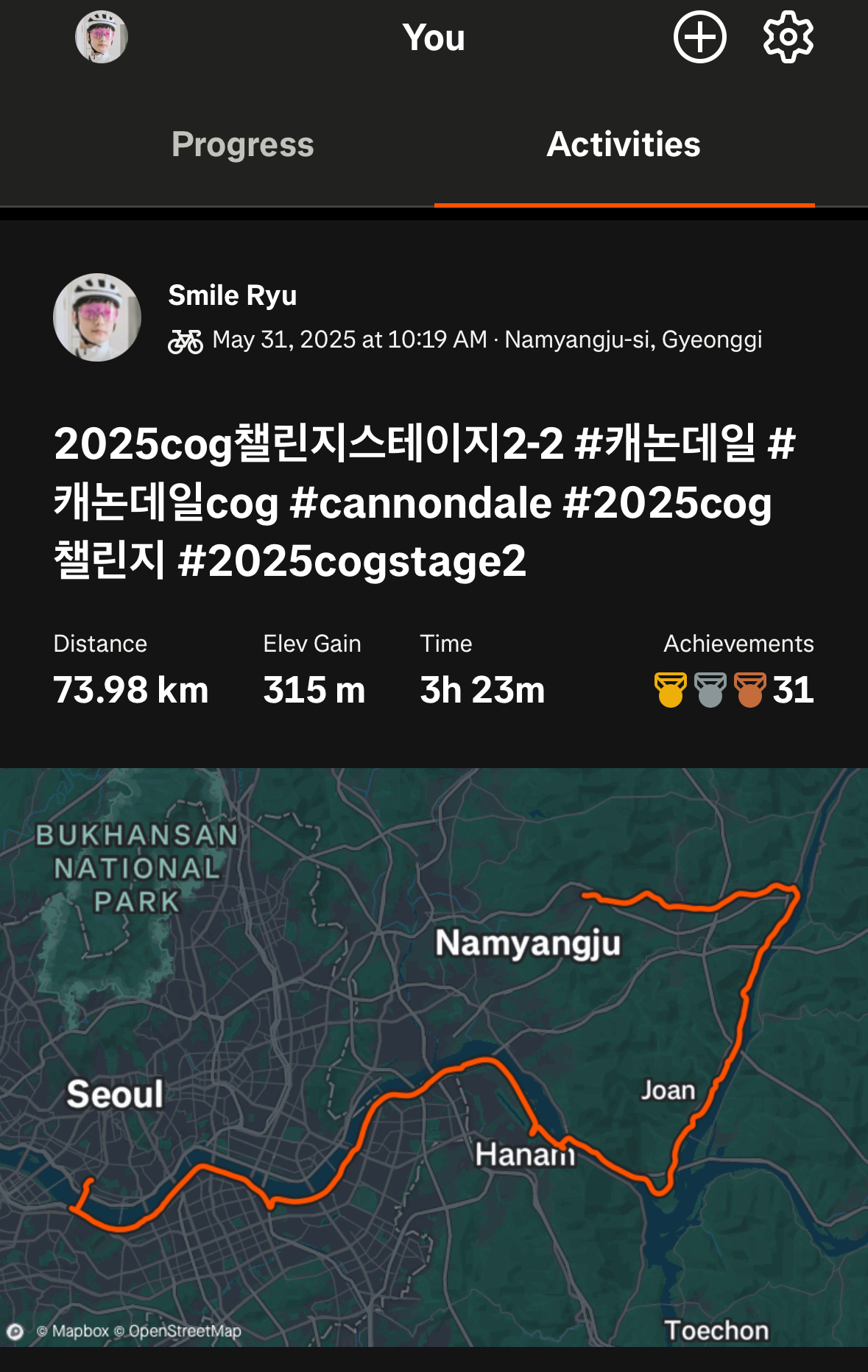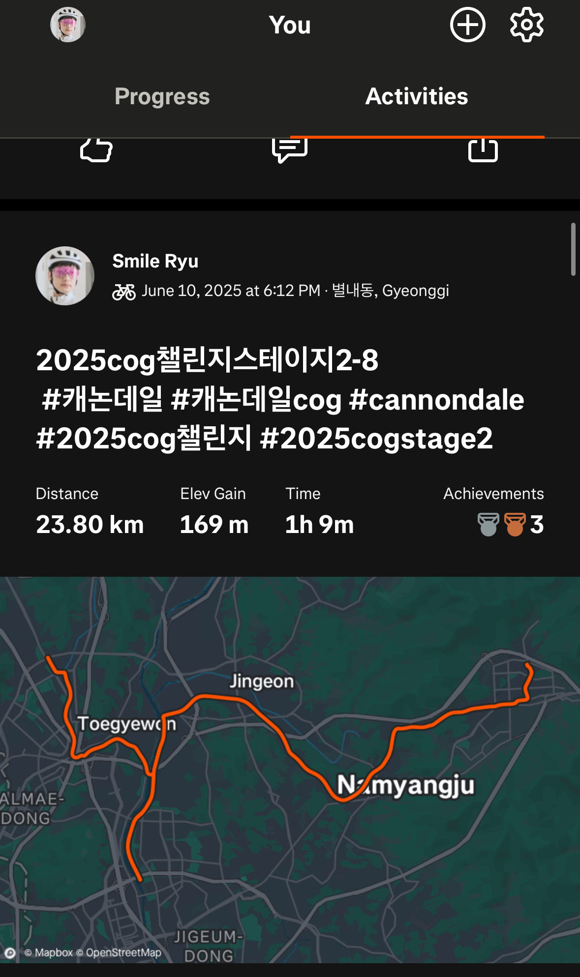 이번 스테이지 미션은 라이딩 거리 미션이라 좀더 부지런하게 움직여야했고 더 운동되는 느낌이었어요.