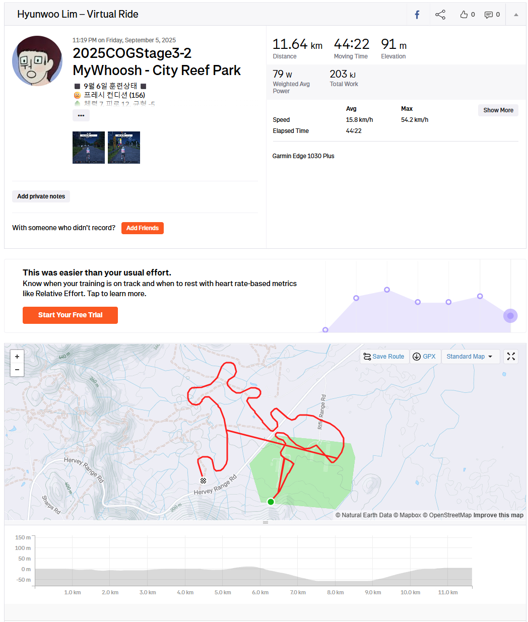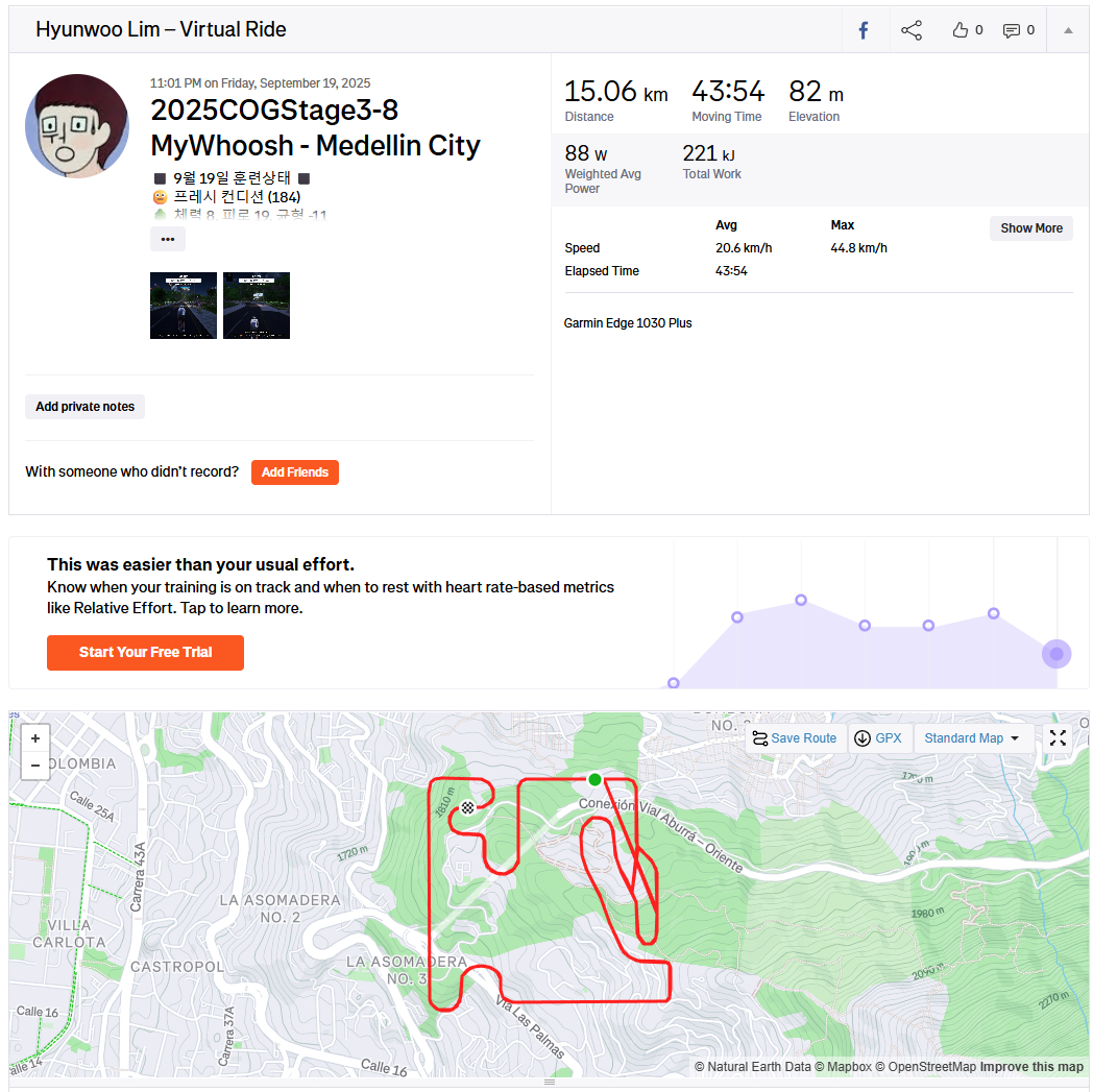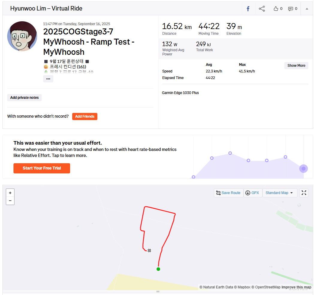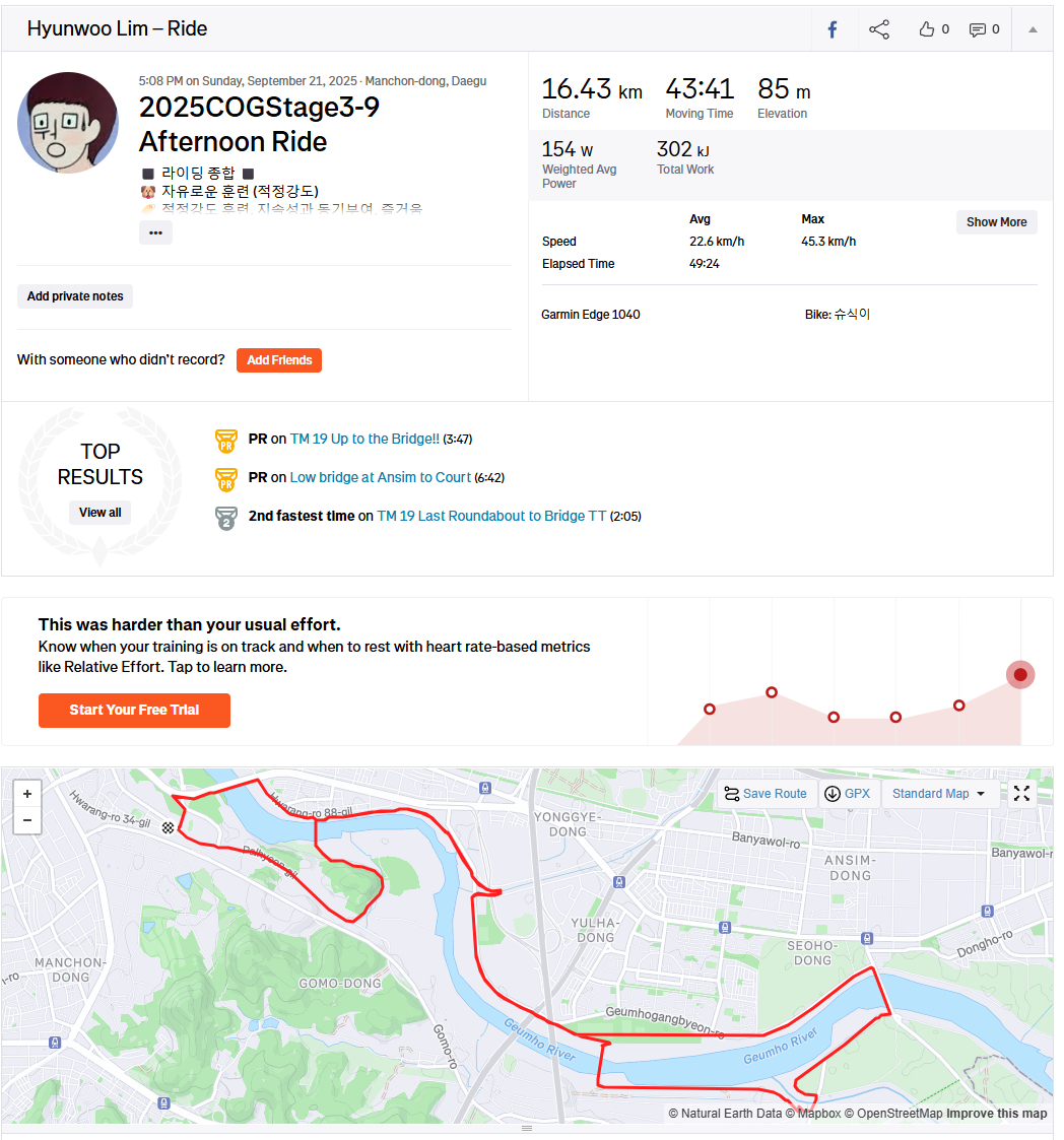 올초 골프 입문 후 생긴 무릎 부상 때문에 "cog 챌린지 포기할까"라는 생각도 들었지만 저강도로 살살 타는 맛을 알아버렸네요.