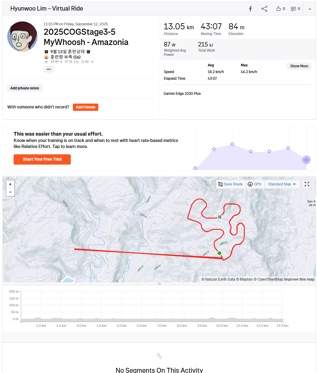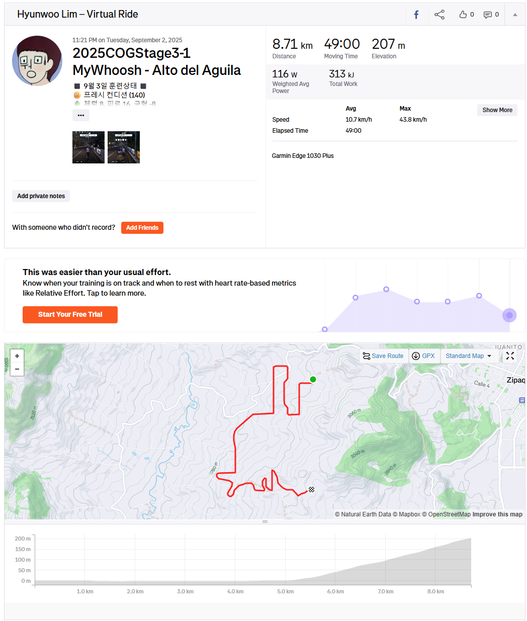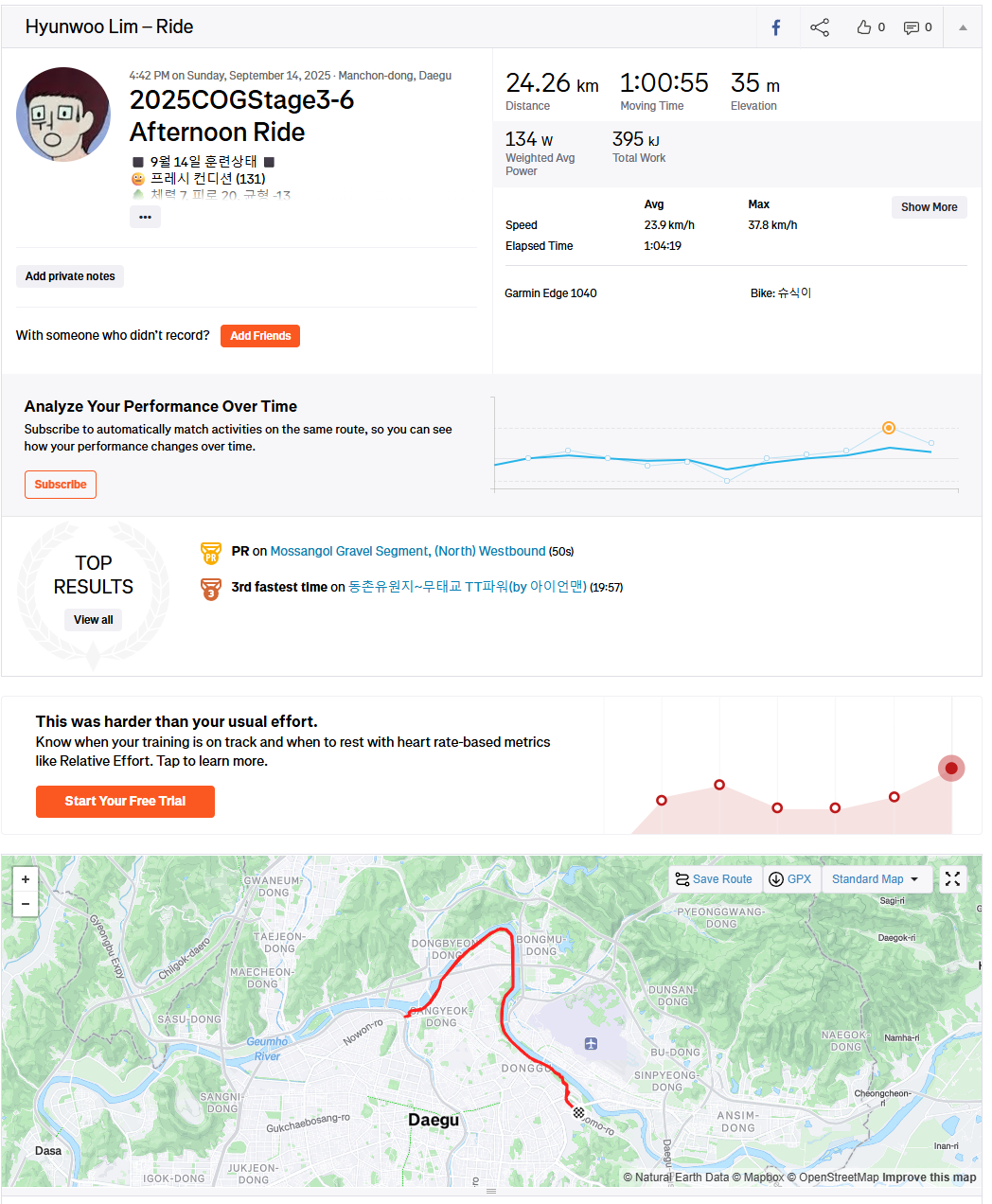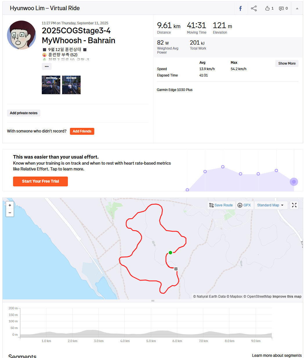 올초 골프 입문 후 생긴 무릎 부상 때문에 "cog 챌린지 포기할까"라는 생각도 들었지만 저강도로 살살 타는 맛을 알아버렸네요.